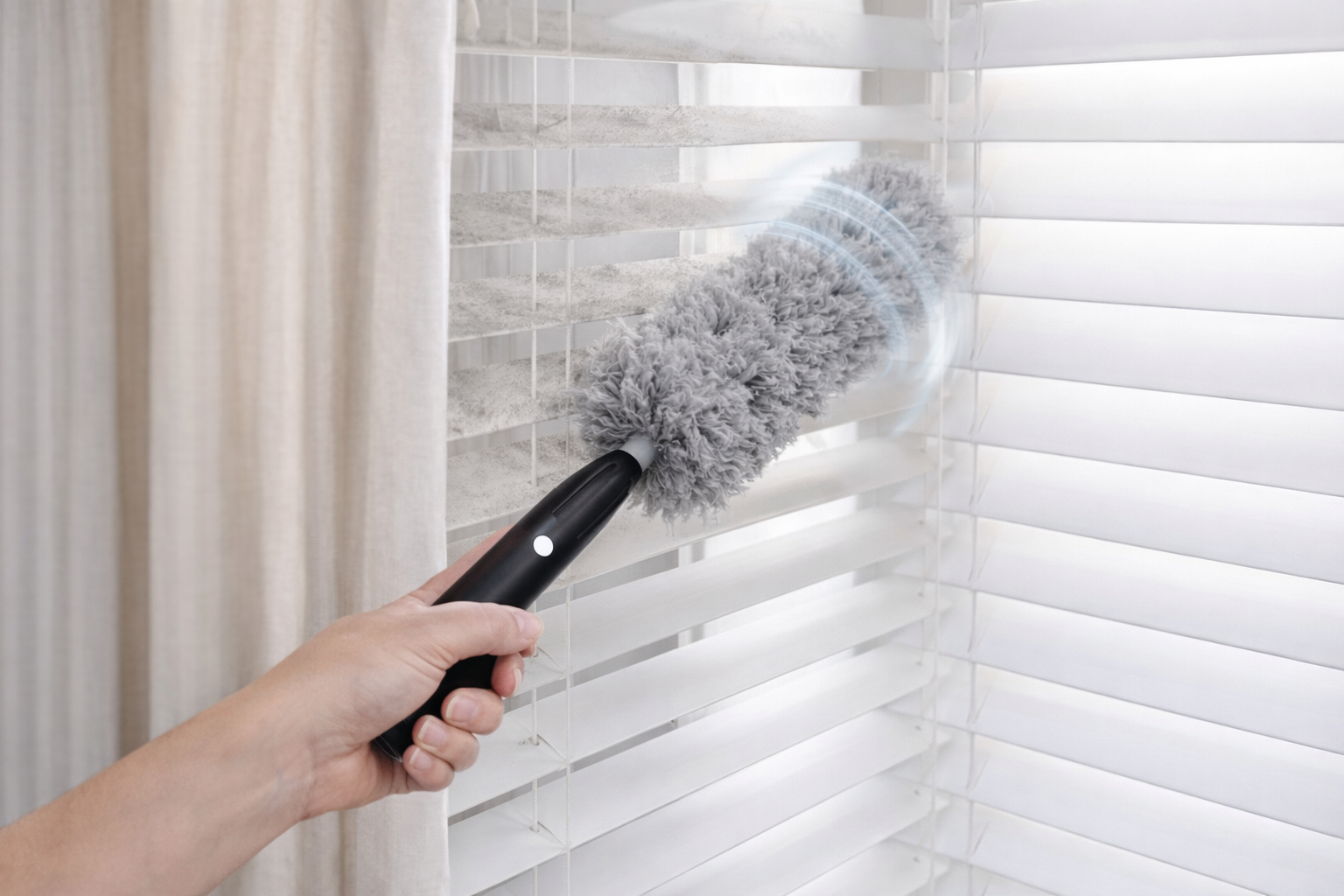 Deze elektrische plumeau is ideaal voor jaloezieën en blinds. De draaiende microvezelkop komt gemakkelijk tussen de lamellen en verwijdert stof zonder het te verspreiden. Ook perfect voor boekenplanken, kasten, meubels, decoraties en andere delicate oppervlakken.
