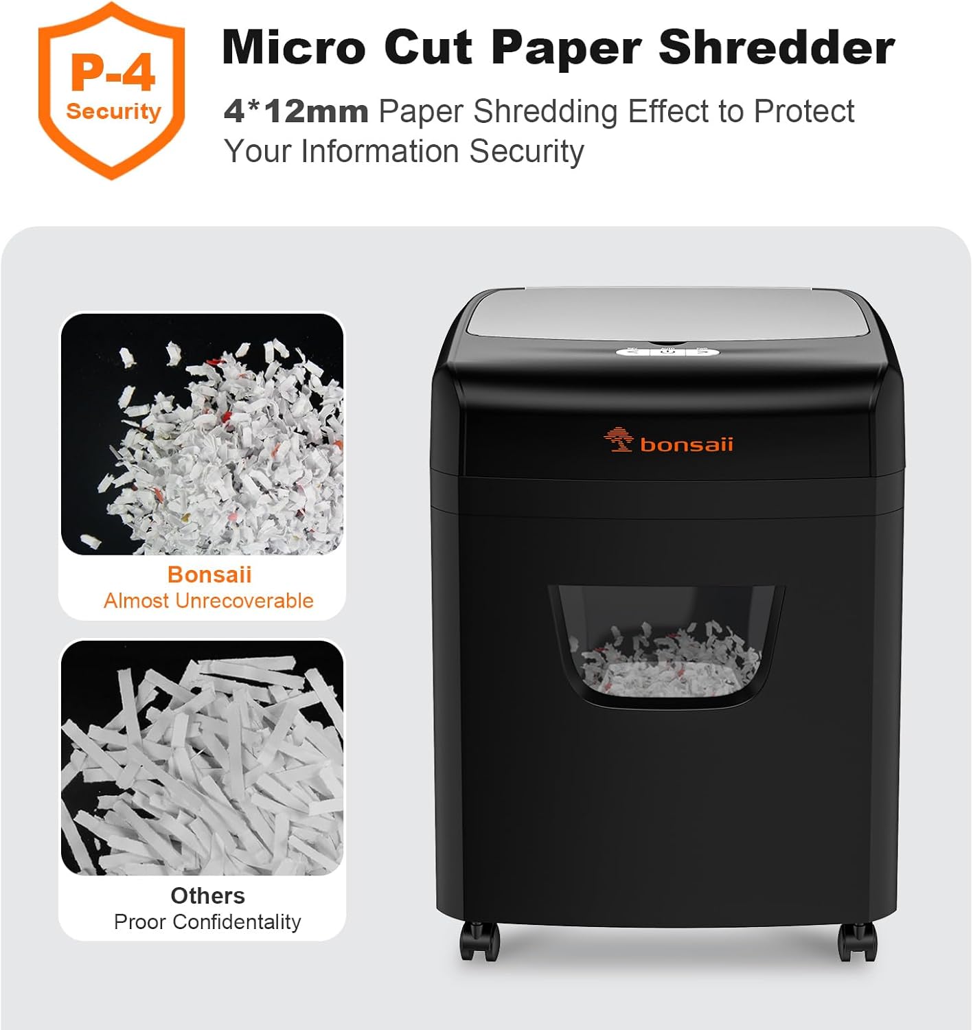 Het P-4 microcut snijsysteem verandert papier in extra kleine snippers van 4 × 12 mm, waardoor jouw gevoelige informatie maximaal beschermd blijft. Ideaal voor thuis, kantoor, winkel of school. De stevige, uittrekbare 23-liter opvangbak biedt ruimte voor zo’n 500 vellen, en een duidelijk blauw controlelampje geeft aan wanneer de bak vol zit. Handige extra’s zoals vier wielen — waarvan twee met rem — maken verplaatsen en vastzetten supermakkelijk.