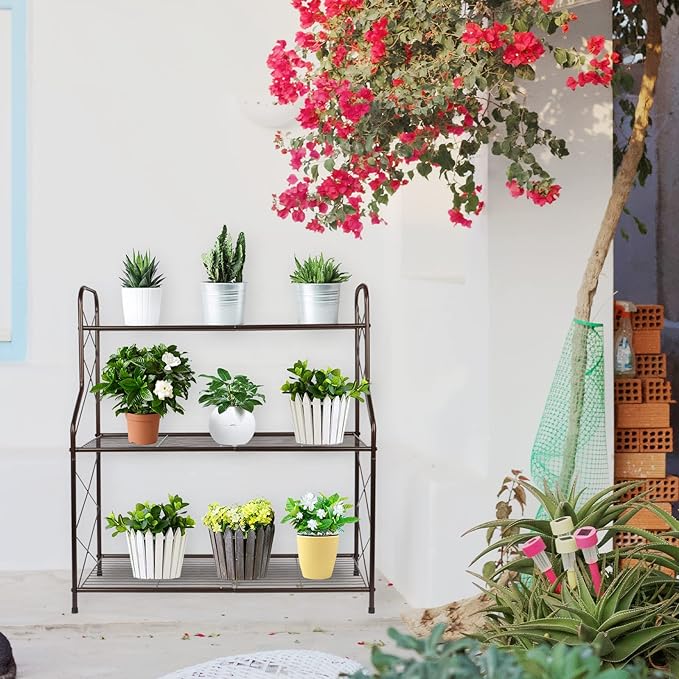 3-Lagen Metalen Plantenrek- Kleur Brons – Vintage Stijl en Grote Capaciteit