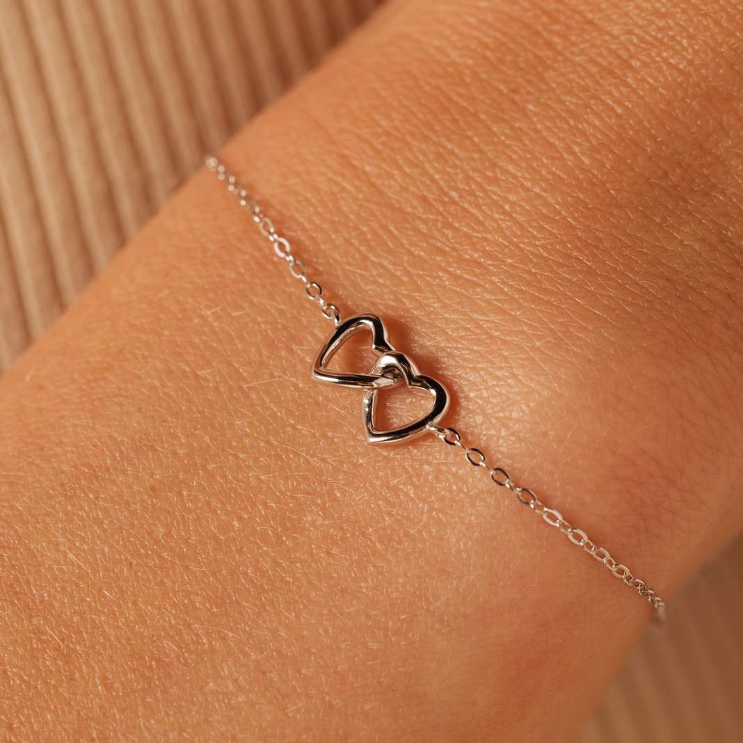Armband – Zwei verbundene Herzen – Silber – 18,5 cm – Elegantes und zeitloses Geschenk