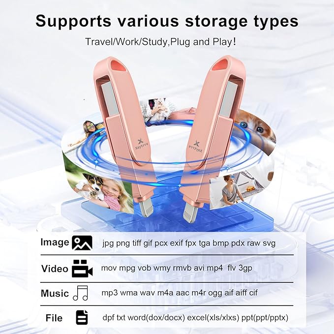 Bewaar, deel en beveilig je bestanden met deze 3-in-1 USB Flash Drive van 512GB. Compatibel met iPhone en iPad, en garandeert hij een stabiele, snelle en veilige gegevensoverdracht. Ideaal om snel foto’s, video’s en documenten op te slaan of over te zetten tussen je smartphone, tablet en computer – zonder iTunes of iCloud.