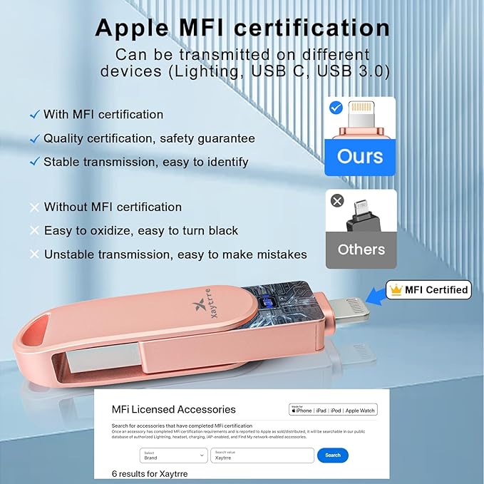 ✔ Apple MFi-gecertificeerd voor stabiele en veilige data-overdracht