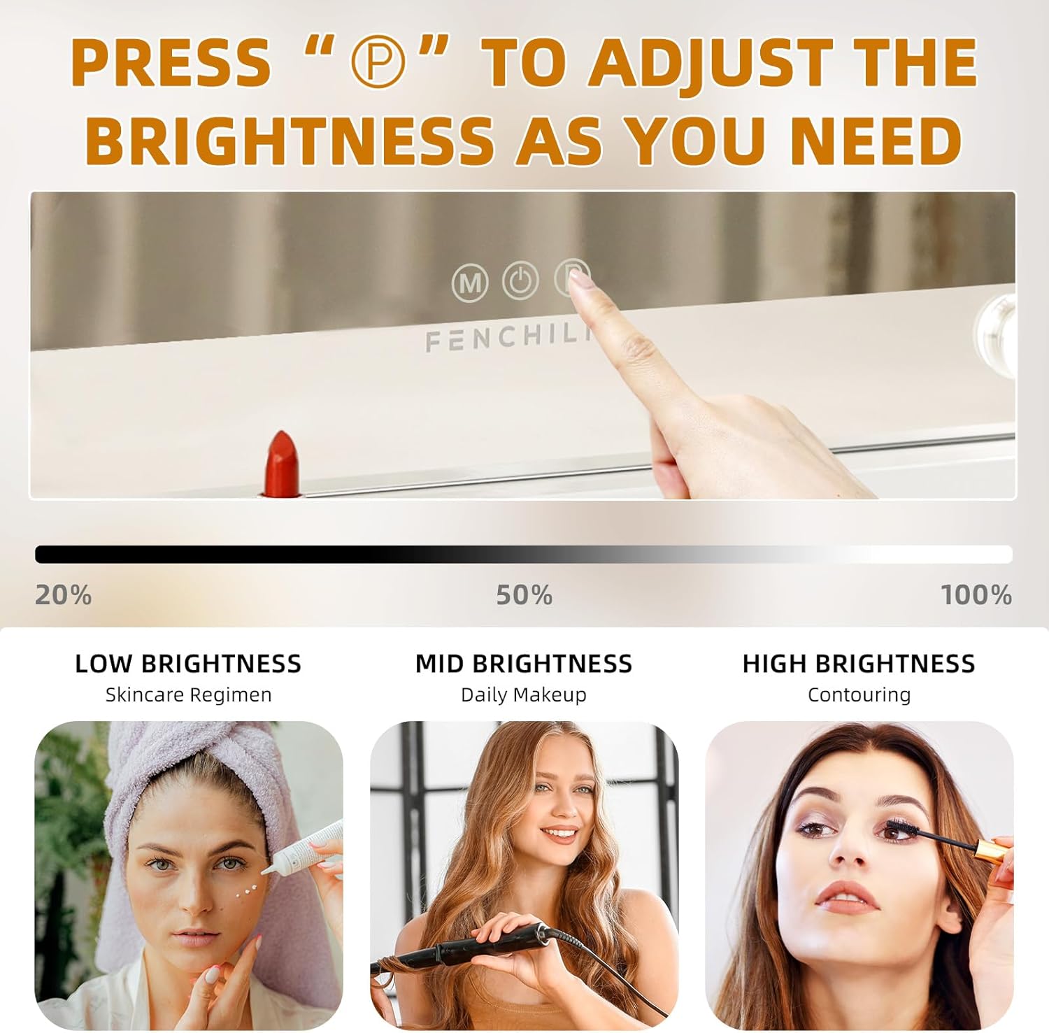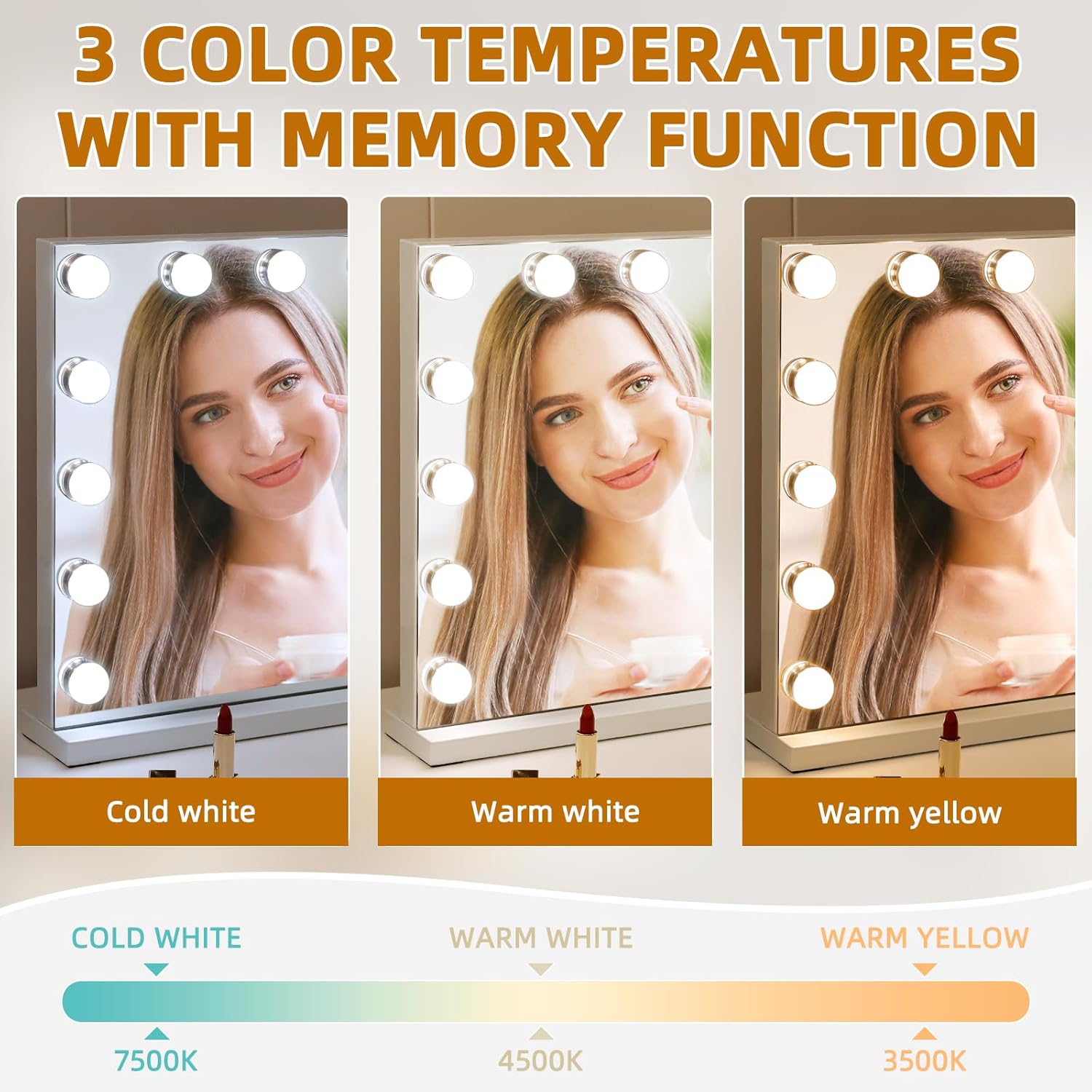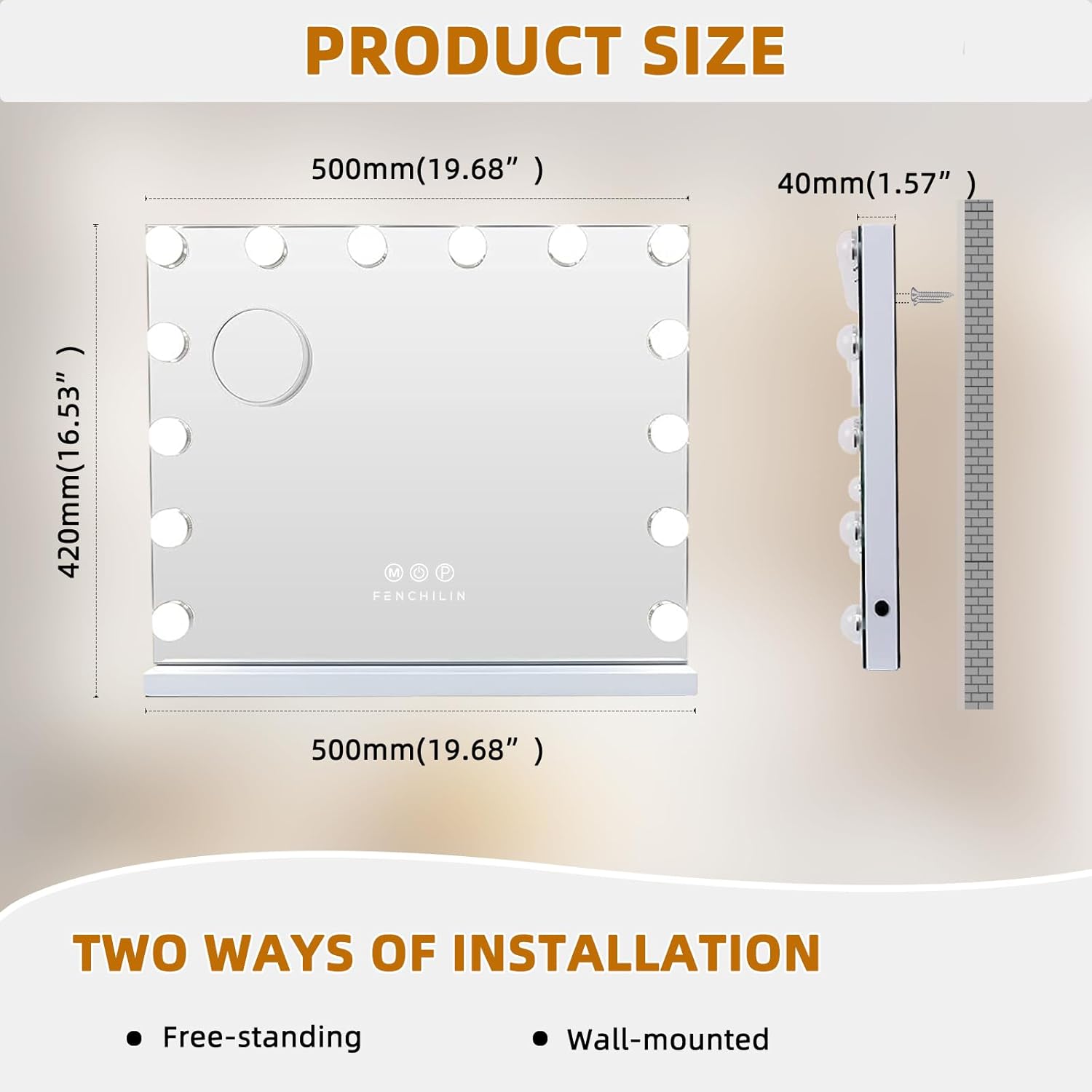 Hollywood Make-Up Spiegel met LED-Verlichting – 14 Dimmers, 3 Lichtstanden, 50×40 cm – Wit