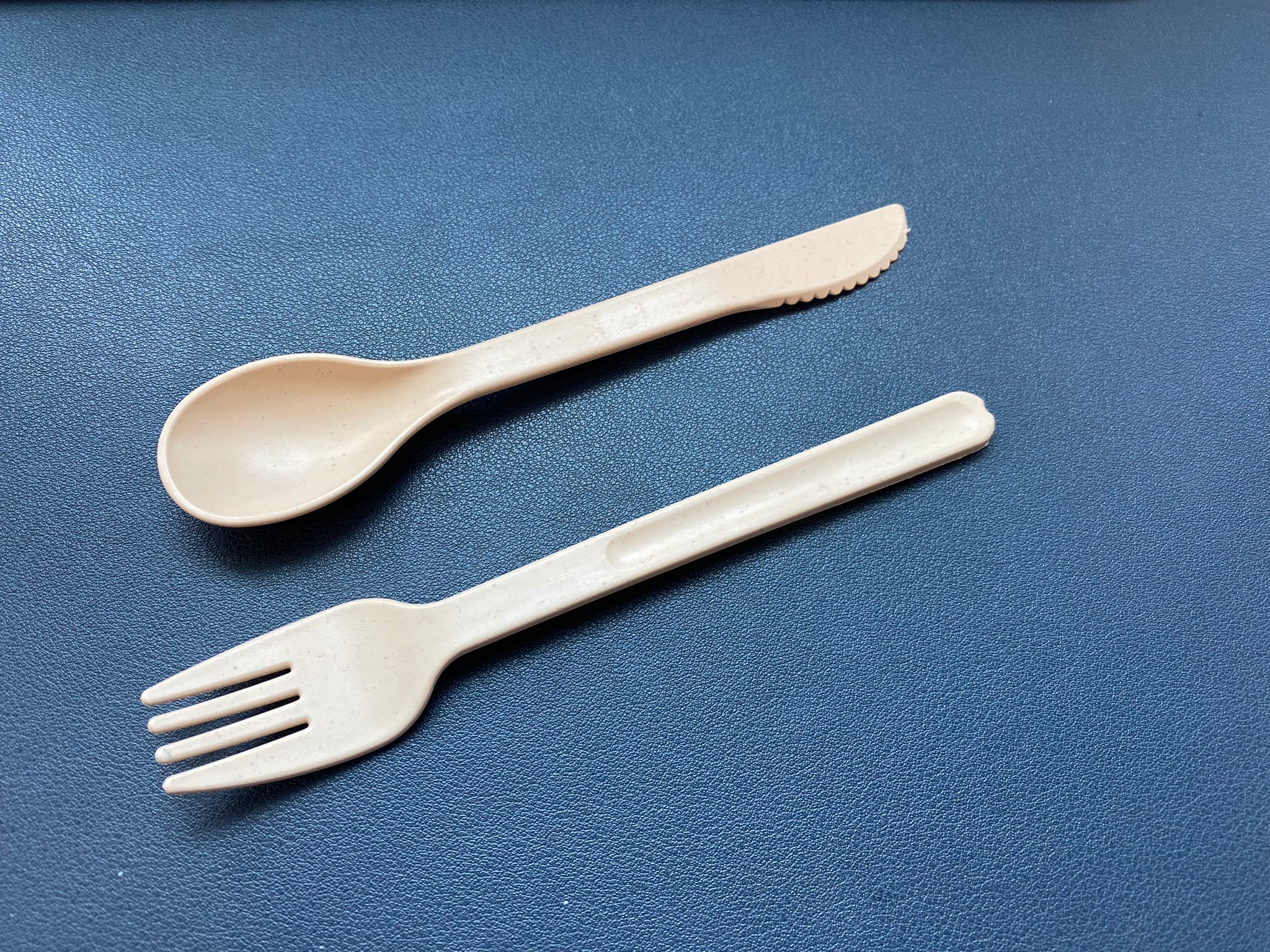Verpakkingsinhoud: 1 Dose mit Deckel, 1 Löffel und Messer, 1 Gabel und eine praktische Aufbewahrungstasche