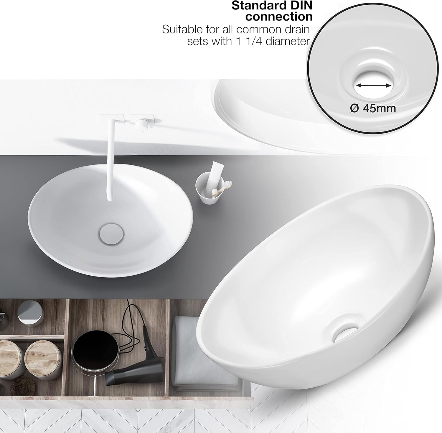 Geef je badkamer of gastentoilet een stijlvolle upgrade met deze ovale opzetwastafel in zuiver wit keramiek. Het tijdloze ontwerp past... Lesen Sie mehr