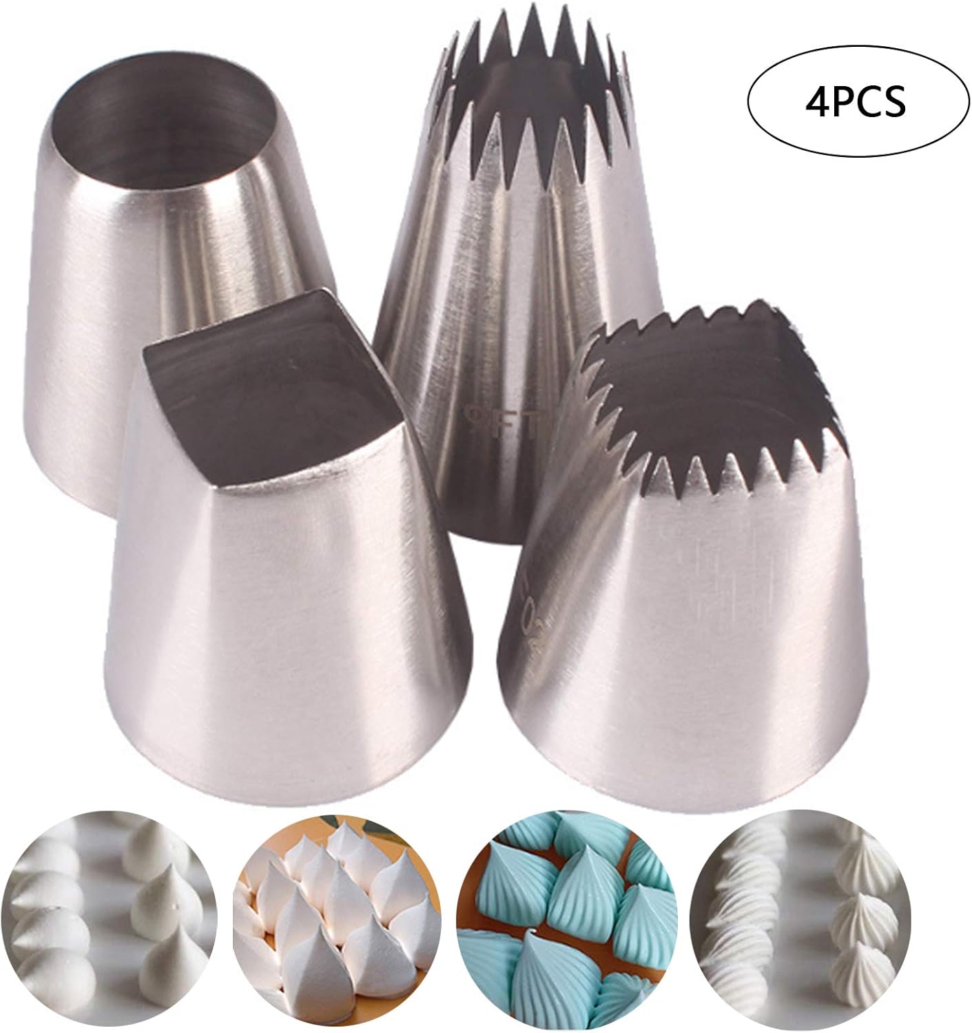 Set van 4 Grote RVS Spuitmondjes voor Taart, Cupcake en Dessert Decoratie