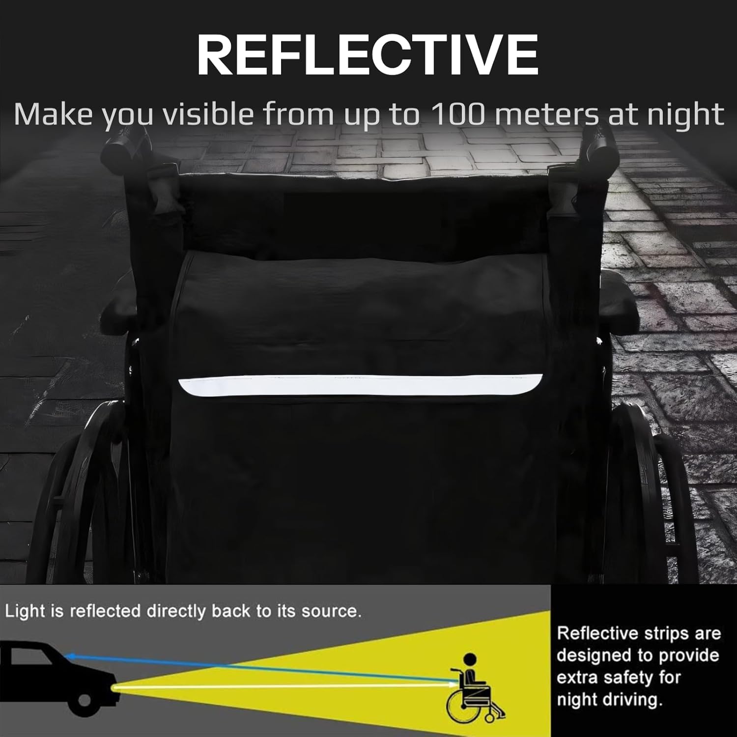 Deze multifunctionele rolstoeltas is de perfecte oplossing voor het veilig en droog opbergen van je spullen onderweg. Gemaakt van stevige, waterdichte Oxford-stof en ontworpen voor dagelijks gebruik. Dankzij de reflecterende tape ben je ook in het donker goed zichtbaar – extra veilig voor in het verkeer.