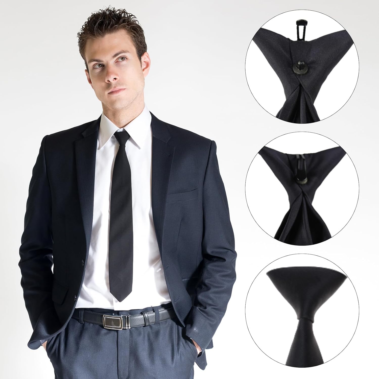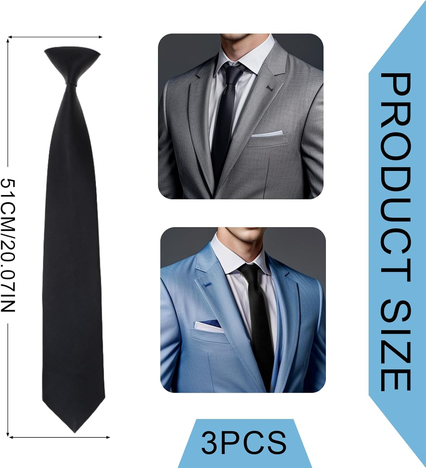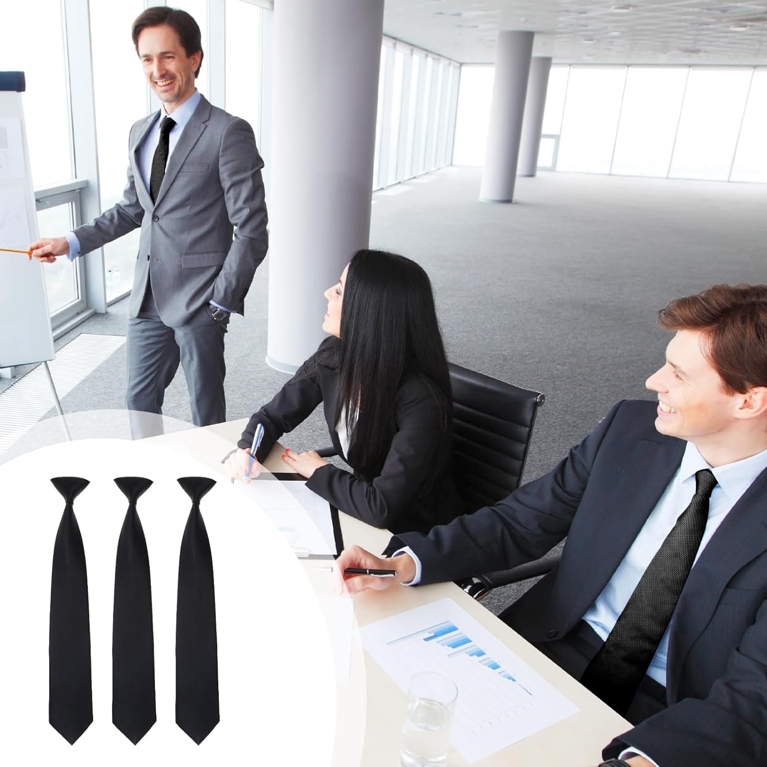 Op zoek naar een snelle en stijlvolle oplossing? Deze set van 3 zwarte clip-on stropdassen is ideaal voor wie gemak wil combineren met een nette uitstraling. De stropdassen zijn voorgeknoopt en voorzien van een stevige clip, waardoor je ze direct kunt dragen zonder gedoe met knopen.